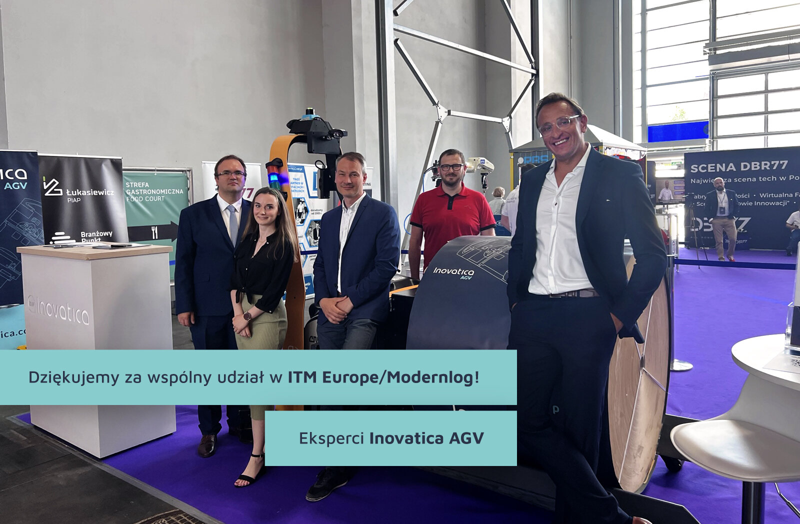 Chcielibyśmy serdecznie podziękować za wszystkie wspaniałe rozmowy i kontakty, które udało nam się nawiązać podczas tych wydarzeń. Wasze zainteresowanie naszą ofertą Inovatica AGV było dla nas niezwykle inspirujące. Byliśmy bardzo zadowoleni z możliwości dzielenia się naszymi innowacyjnymi rozwiązaniami z Wami. W przestrzeni Przemysłu 4.0 przygotowanej przez DBR 77 mogliście poznać automatyzację kompleksowo: od autonomicznych wózków widłowych, przez inteligentne systemy zarządzania magazynem, po mniejsze roboty transportowe i współpracujące. Jesteśmy dumni, że mogliśmy przedstawić z bliska, jak technologia AGV może zrewolucjonizować logistykę w Waszych firmach.
