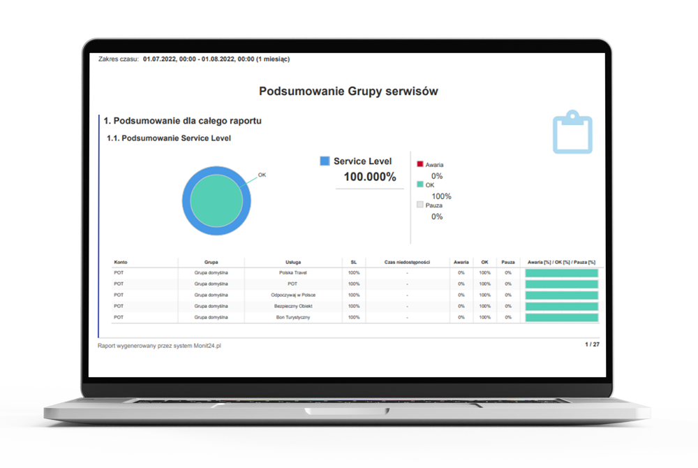 The declared level of their availability is 99.25%, but usually we manage to significantly improve it. Thanks to this, for the vast majority of months (including the key summer months), POT services are available without interruption, reaching the SLA of 100%. Importantly, the monitoring of availability is carried out by an entity independent from Inovatica, the company Monit24.pl