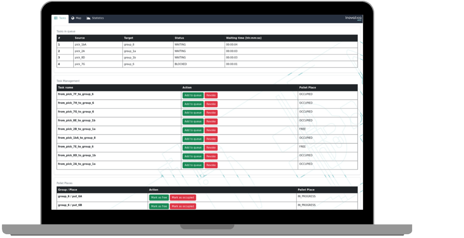 Zarządzać zadaniami i zleceniami: Twórz, przydzielaj i monitoruj zadania dla swoich wózków AGV, zapewniając płynną i wydajną realizację procesów transportowych.